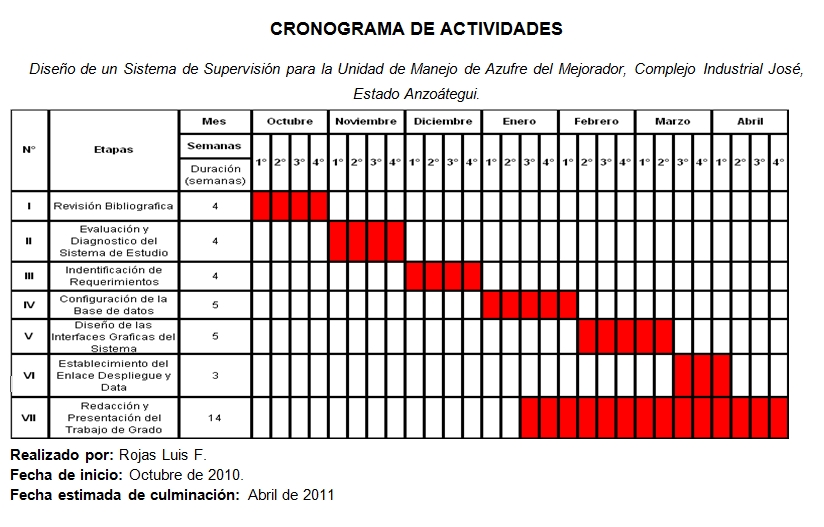 - Tabla con el cronograma